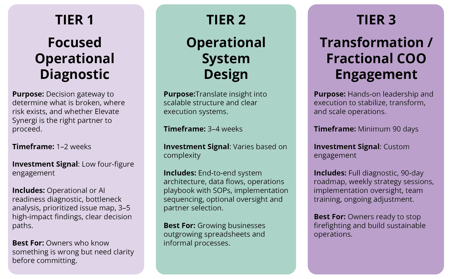 Fix What's Broken. Build What Scales. Three ways to work together — from quick-win fixes to full operational rebuilds. Book Free Consultation